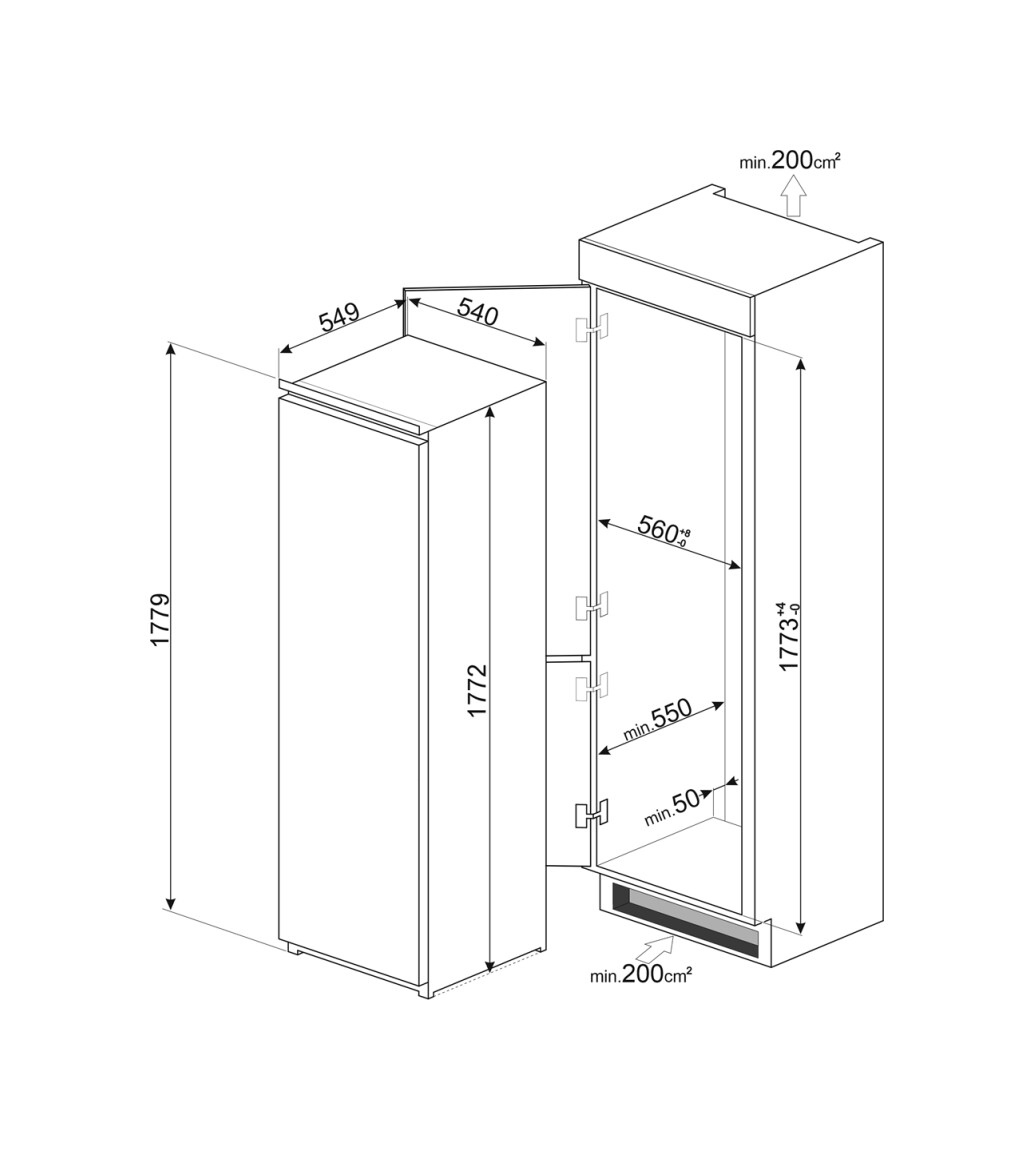 Хладилник с камера за вграждане 282л - SMEG S8C1721E