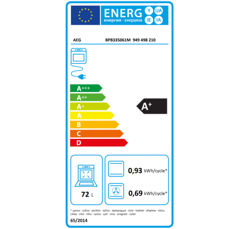 Мултифункционална фурна за вграждане 72л - AEG BPB335061M