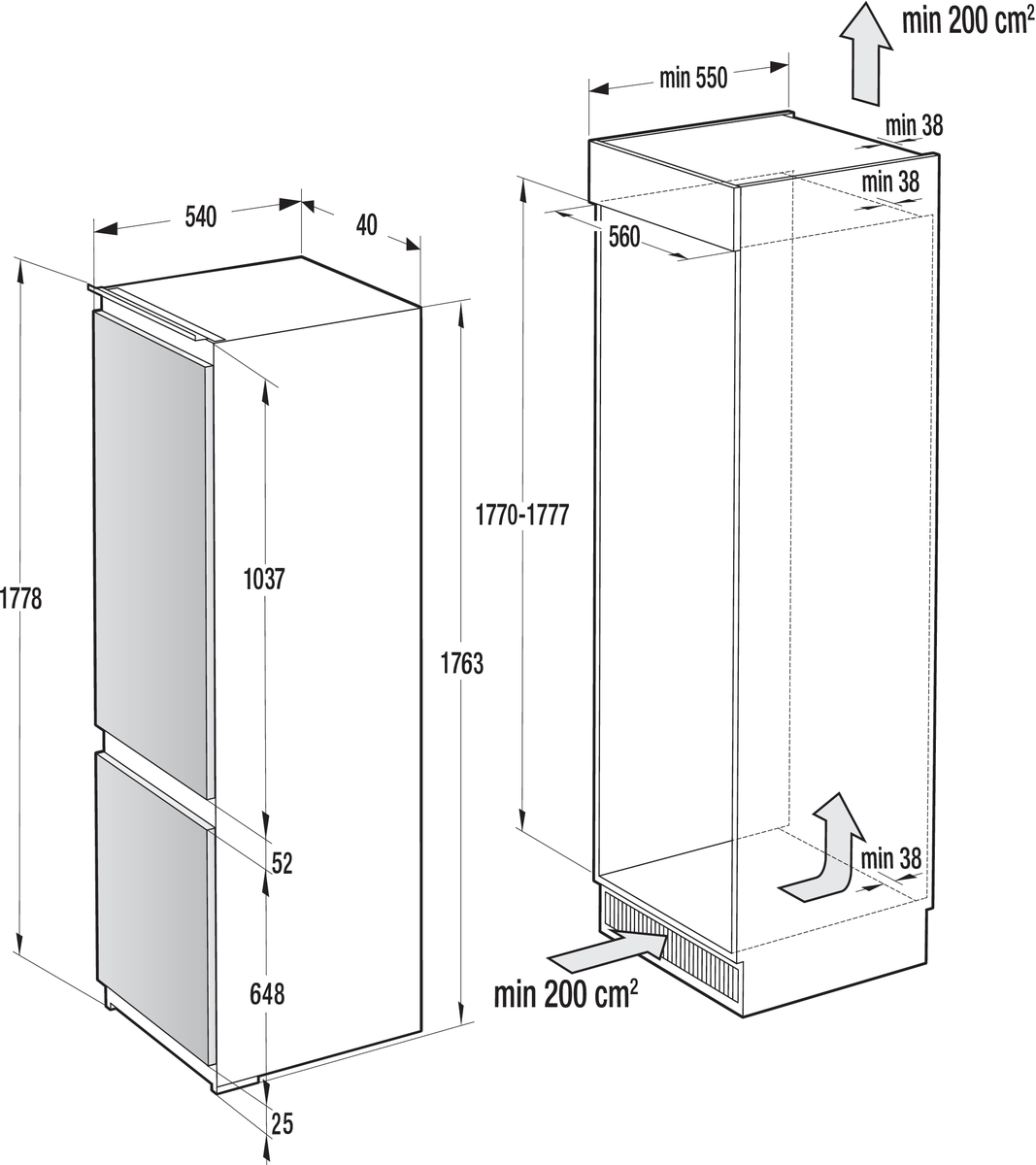 Хладилник с фризер за вграждане 250л - GORENJE RKI517EP1