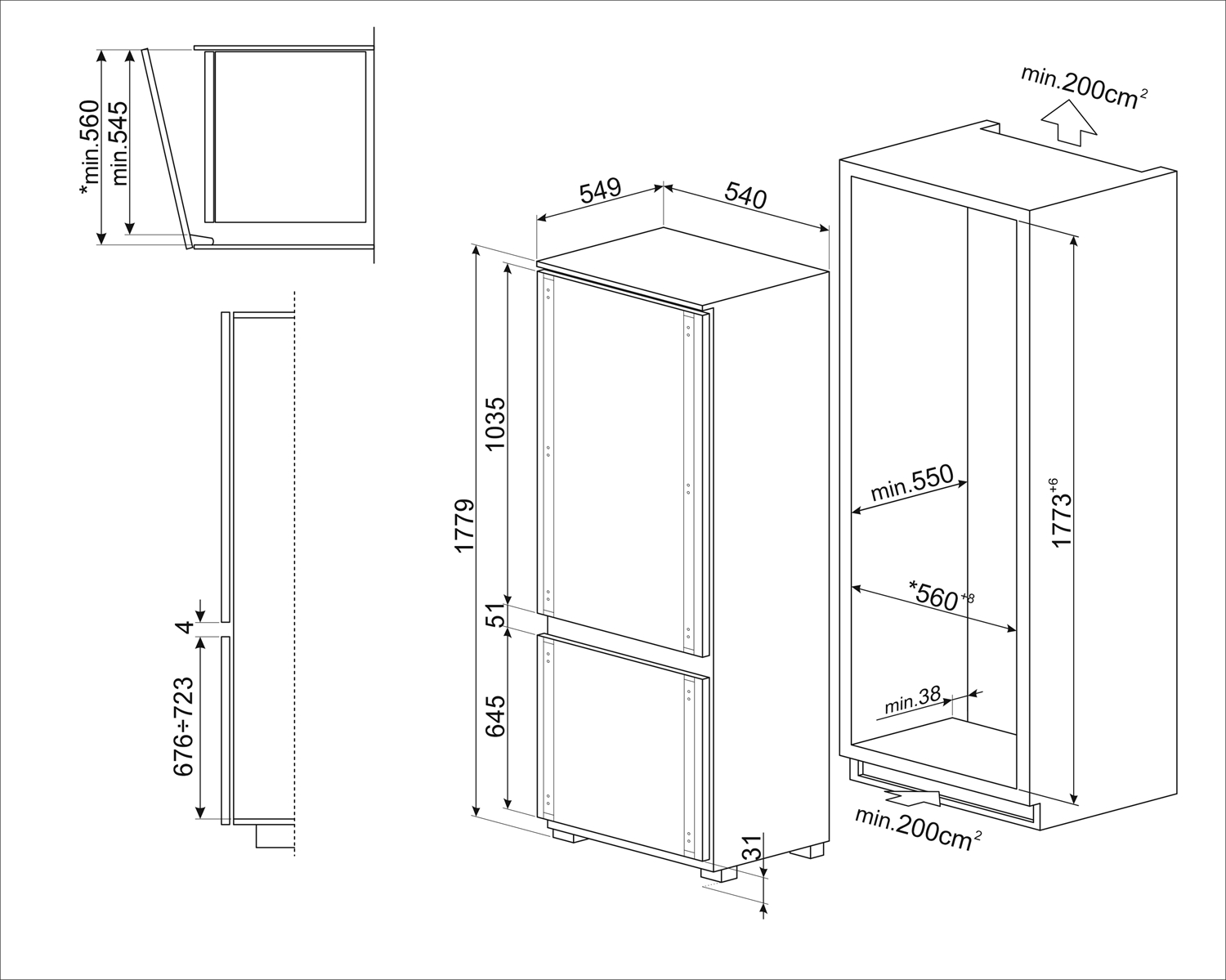 Хладилник с фризер за вграждане 269л - SMEG C41721E