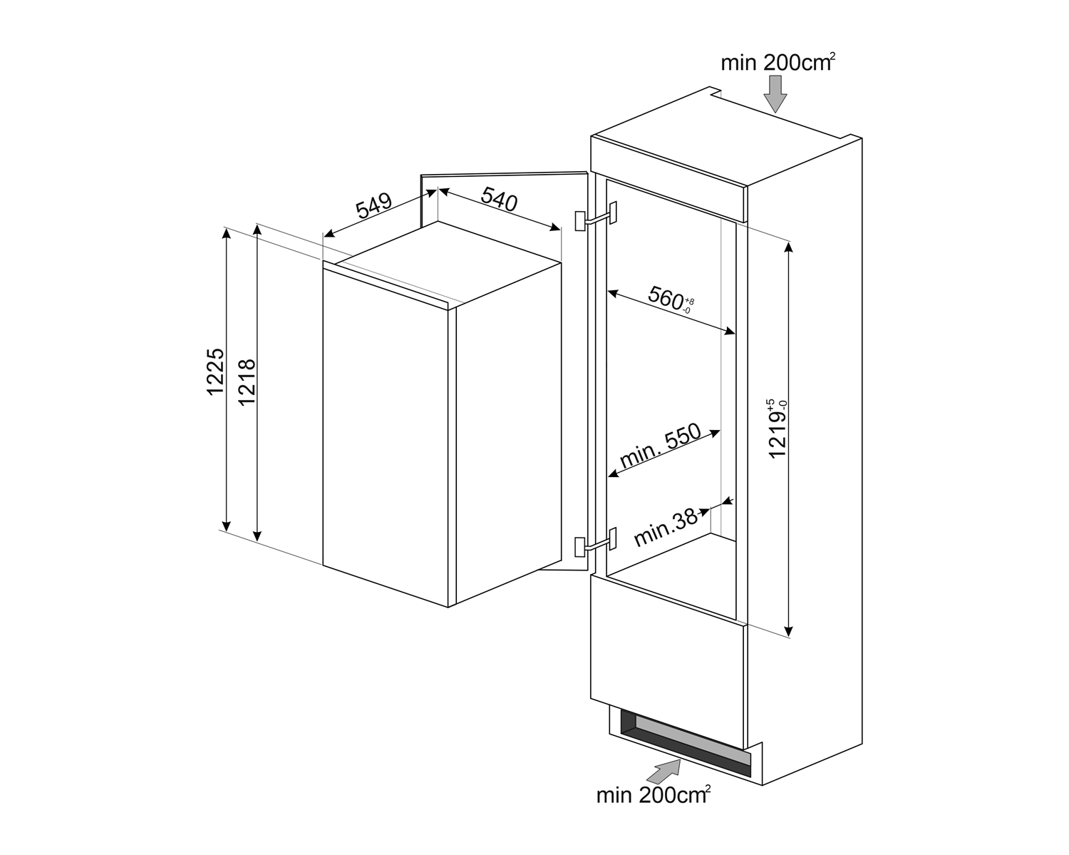 Хладилник с камера за вграждане 188л - SMEG S4C122E