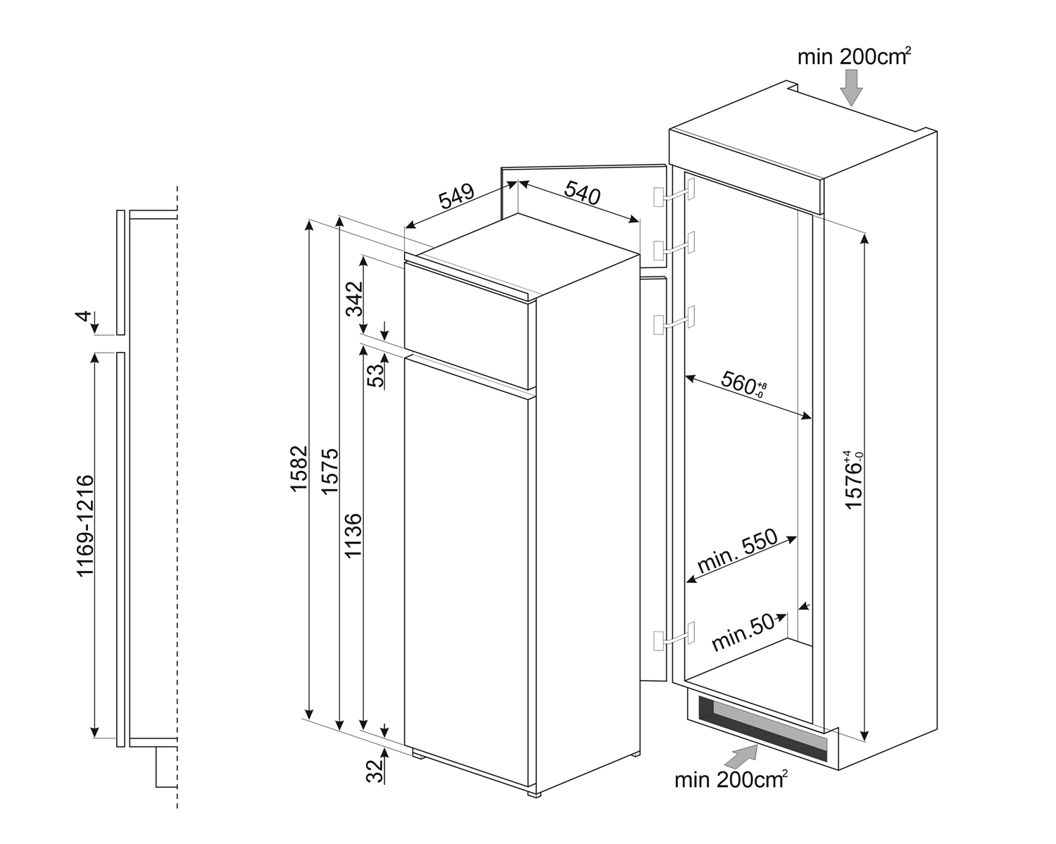Хладилник с камера за вграждане 249л - SMEG D4152E
