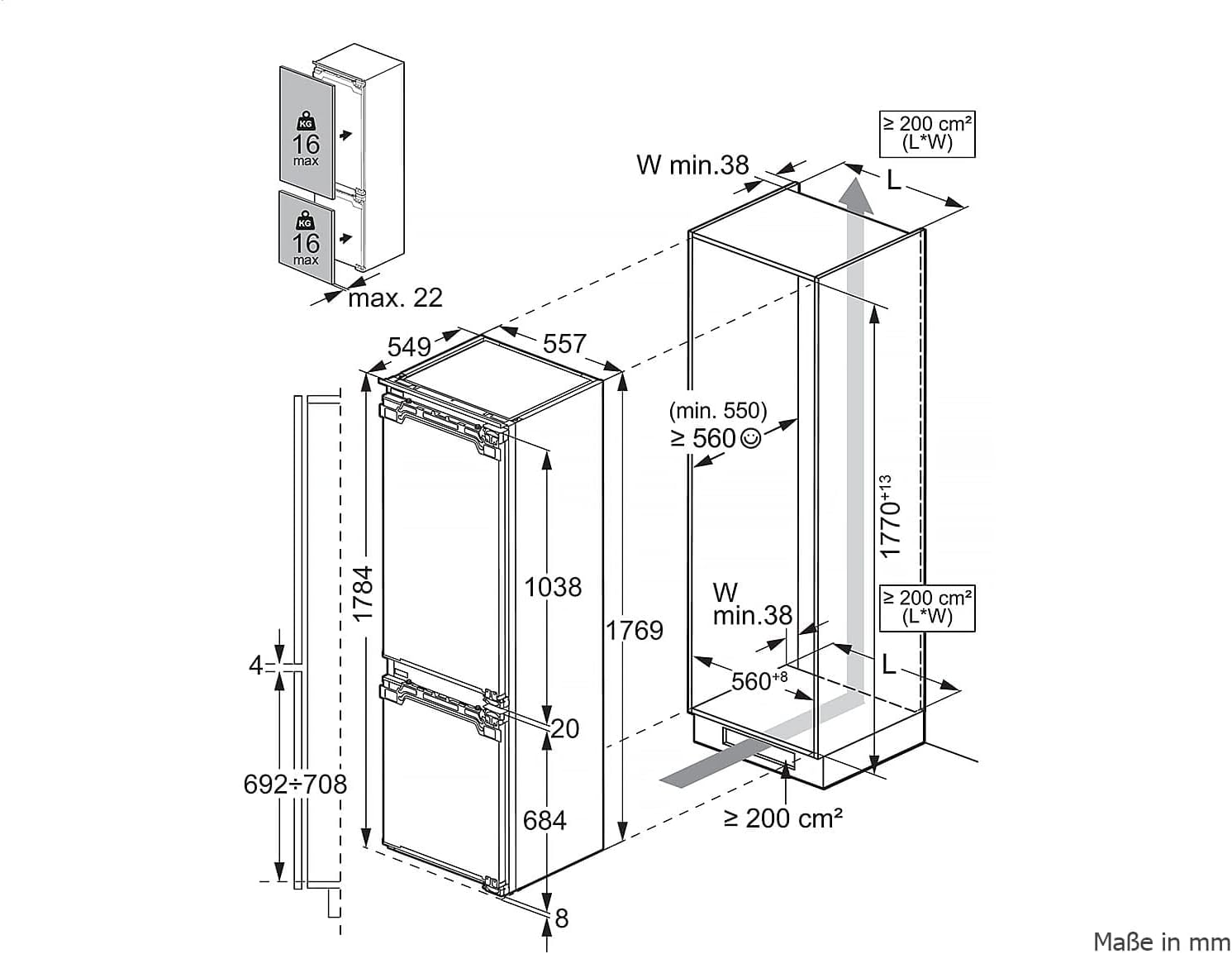 Размери В/Ш/Д - 176,9см/55,7см/54,9см