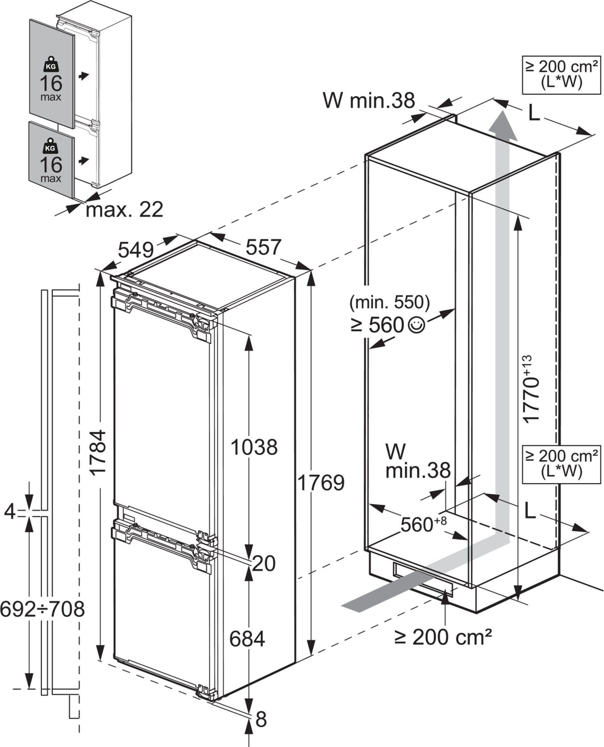 Размери В/Ш/Д - 176,9см/55,7см/54,9см