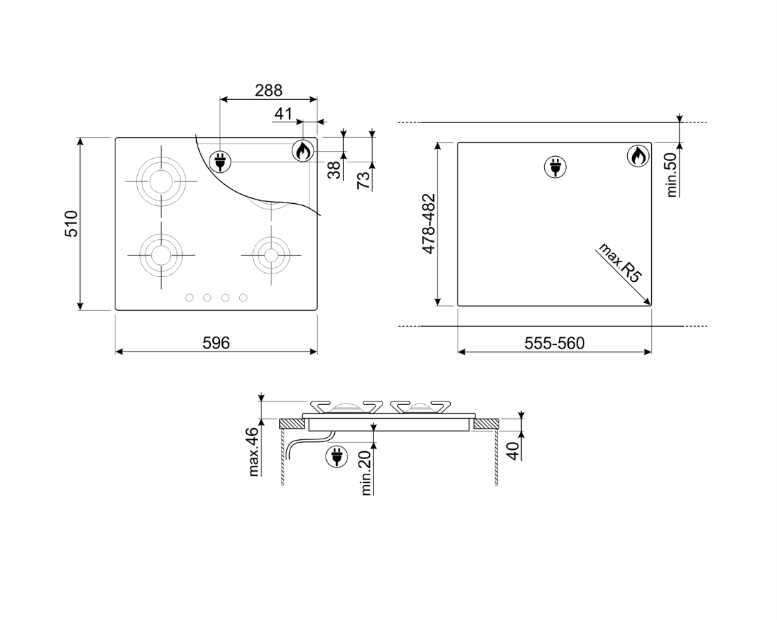 Газов плот 4 зони - SMEG P64ES